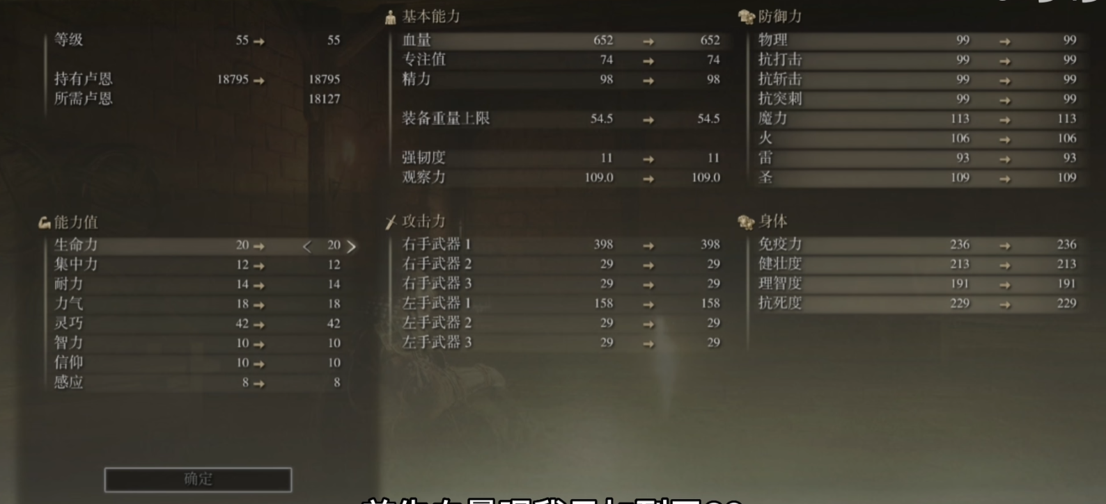 后期成型后,武士的核心属性是灵巧,它能提升攻击速度、减少战技前摇,还能降低摔落伤害。力量可以适当补到40,但别盲目堆属性,因为后期加点收益会越来越低。如果觉得蓝量不够用,可以少量分配一些集中力,毕竟频繁使用战技还是会耗蓝的。装备方面推荐水母盾或乌龟壳,前者能加攻击力,后者提供100%物理减伤,根据战斗风格自由切换就好。