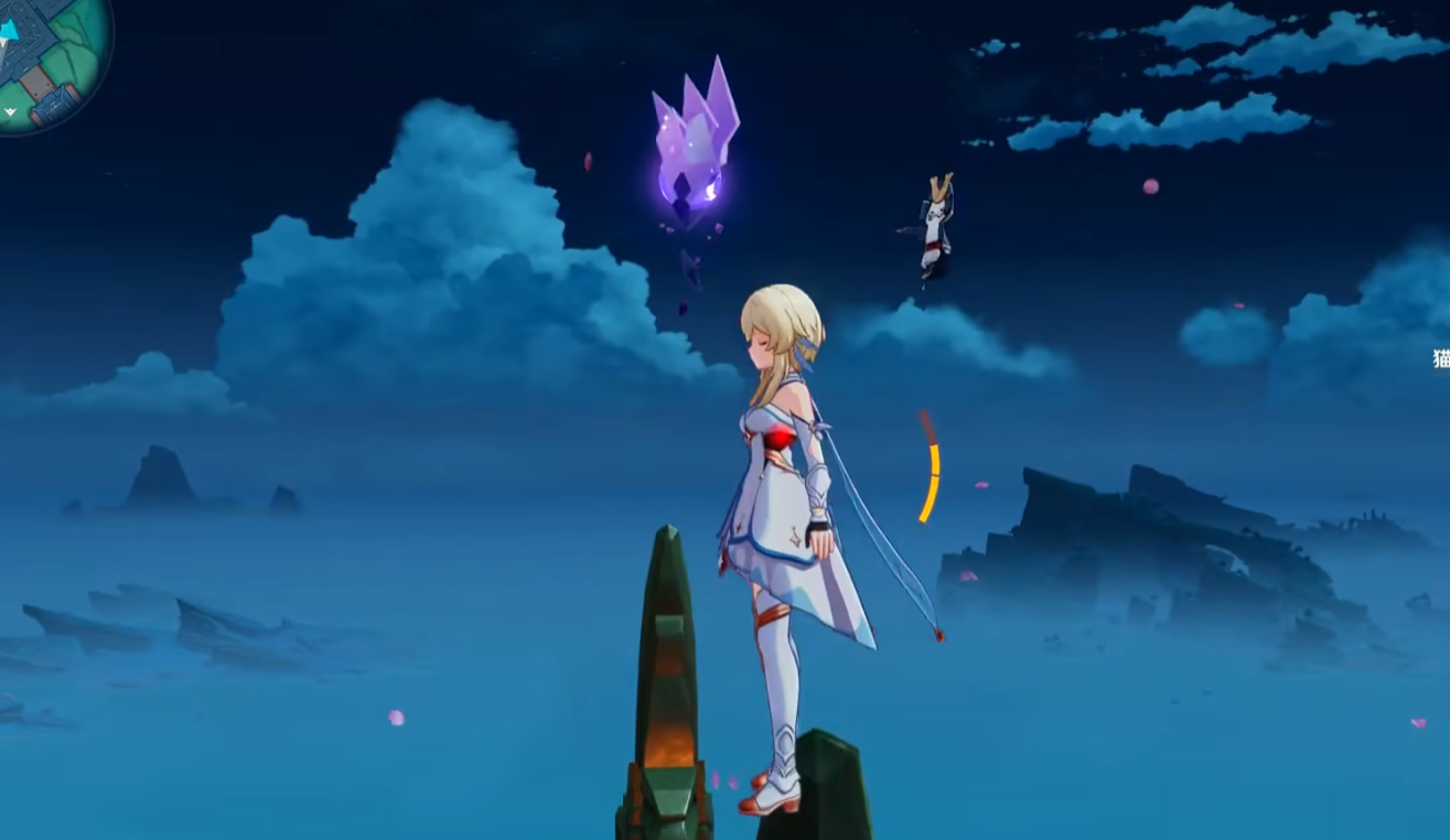若角色拥有万叶或温迪等风系角色的上升气流能力,可大幅简化流程。从中层屋檐切换至风系角色,长按元素战技生成风场,借助风之翼滑翔至雷神瞳所在位置。需注意部分屋檐存在碰撞体积,飞行时需保持一定高度避免卡顿。对于未解锁风系角色的玩家,岩主荒星的叠加使用仍是可靠方案,通过多次调整岩造物位置创造阶梯式路径。