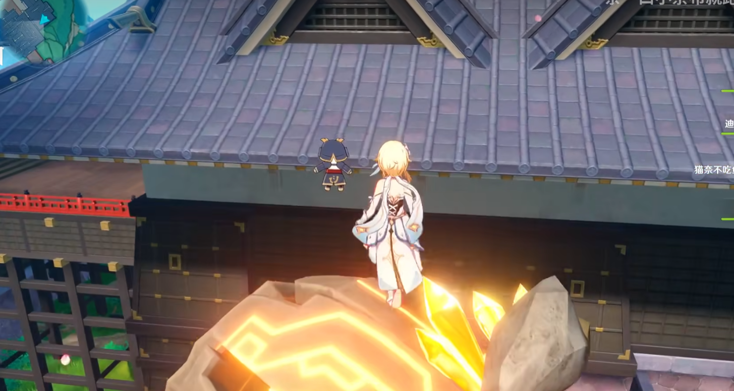 获取稻妻天守宫房顶的雷神瞳需要利用地形与角色技能的配合。首先传送到鸣神岛·天守副本的锚点,向右移动至建筑侧面,通过攀爬墙壁到达中层屋檐。此处需使用岩属性主角的荒星技能,在墙壁与屋檐交界处横向放置岩造物作为垫脚点,确保岩柱顶部与上层屋檐无缝隙以便攀爬。成功登顶后调整视角向上观察,雷神瞳通常悬浮在建筑最高点的半空中。