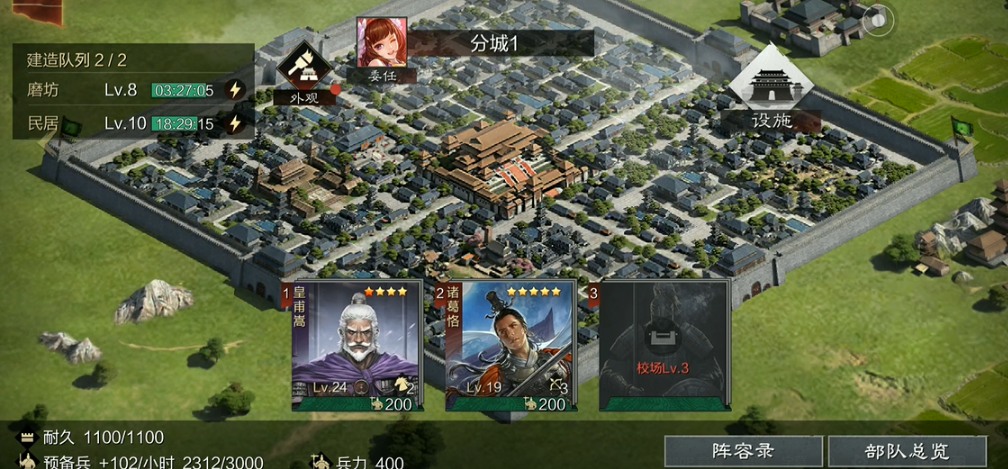 提升耐久度上限的主要途径是升级城主府和城墙。城主府等级越高,城池基础耐久度越高,同时解锁更多建筑功能。城墙则直接增加城池防御属性,两者均需消耗大量资源,建议优先保证日常资源供给后再进行升级。部分武将的施政技能可临时提高耐久上限,例如华雄担任大型要塞参军时可提升60点耐久,姜维担任主城参军时可增加150点耐久,合理利用这些武将能有效增强城池防御能力。