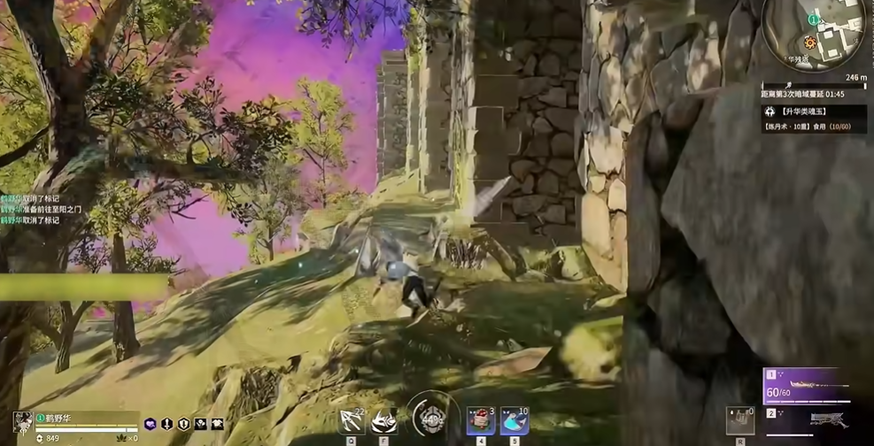 壁击的战术价值主要体现在地形利用和战斗节奏控制两方面。当角色处于树木、悬崖或建筑墙面等复杂地形时,可通过钩爪快速上墙创造壁击条件。风男特木尔的技能组合尤其适合该战术,其点控技能可将敌人吹起后衔接蓄力攻击,随后钩爪上树形成壁击压制。决赛圈多障碍物的环境下,该技巧能有效限制对手走位空间。