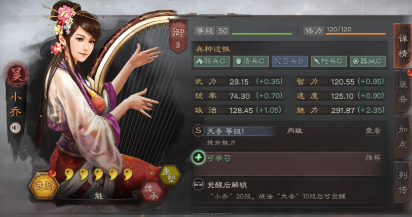 政治属性决定资源产量和城建效率,主政官需选择政治值最高的武将,例如张昭的自带技能可提升全资源产量,而荀彧的高政治值适合担任木材、铁矿等资源官。魅力属性则影响寻访高阶武将、锻造优质装备的概率,司马徽因其自带技能可大幅提升寻访高阶武将的几率,成为寻访使的最佳人选。小乔的高魅力值在驯马和锻造中能减少消耗并提高高阶装备产出率。