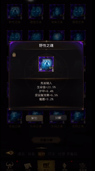 魔物之魂的装备机制需关注词条搭配。每个角色可装备三个魔物之魂,优先选择固定加成词条如物攻、魔攻、属性伤害或全部伤害增幅。先发制人词条具有特殊价值,能在战斗开始时触发额外攻击,但重复装备不会叠加效果。