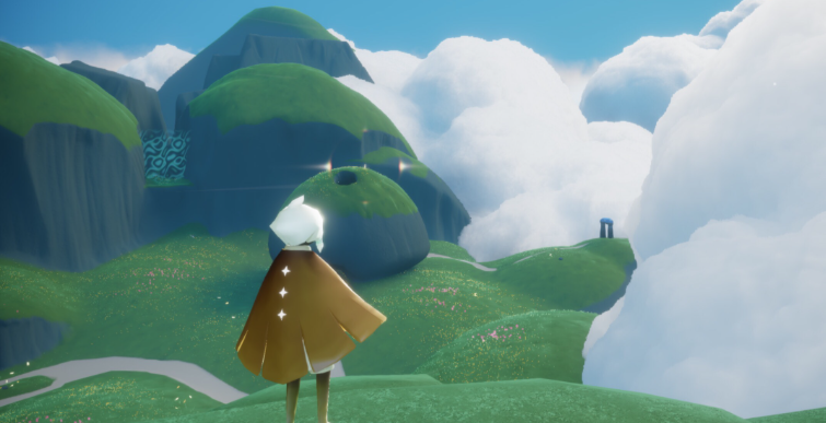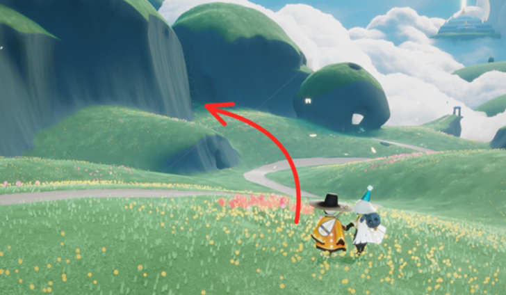进入云野后,你首先会来到蝴蝶平原,这里蓝天白云特别开阔。往前飞一小段,落地后注意看左边,会有一座圆圆鼓鼓像馒头一样的小山包,第一位蝴蝶运动先祖就在那个山洞口等着你呢,这个特别好找,算是给你的一个见面礼。拿完这个先祖之后,别急着往远处飞,回头看看那个馒头山的山顶,那里还藏着一个光之翼,顺手拿了能增加你的飞行能量。你需要面对蝴蝶平原上一个巨大的拱门,穿过它就能到达下一个主要区域,也就是大家常说的三塔图或者仙乡岛屿。
