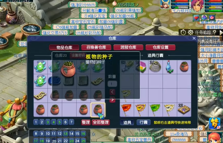 种树用的花盆和花圃可以在西梁女国的庭院饰品商那里买到,一个青花瓷花盆大概是15万两,一个最基础的本栏花圃是5万两。这些物件都是可以玩家之间交易的,所以入手前不妨在世界频道喊一喊,说不定能收到更便宜的二手货。至于树苗或者说植物种子,主要来源是向其他玩家收购,平时做任务、刷副本也有机会得到。种子分等级,价格随区服波动,通常2级和3级的种子几万两就能买到,而4级种子就比较贵了,要几十万两。不同等级的种子占的地方不一样,比如2级种子一个花盆或者半个花圃就能种下,而3级种子就必须种在整个花圃里了,规划庭院空间的时候要注意这一点。
