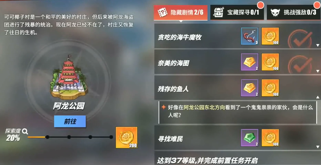 阿龙公园探索是东海区域的一个重要玩法,这里有不少隐藏剧情等着你去触发,比如和特定的NPC对话后开启任务链,这些任务往往需要你在不同地点之间移动,完成一些简单的互动或战斗。你可能会遇到需要喂食海牛或收集散落海图的情节,虽然具体位置不能细说,但整体流程设计得挺友好,跟着提示走基本不会迷路。
