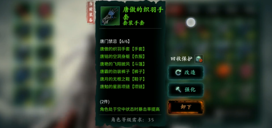 提到了唐鞋,就绕不开唐门这套装备。唐门套装对于走空中战斗路线的绝影来说,是后期一个非常重要的选择,甚至被很多玩家看作是毕业套装之一。这套装备的核心效果是强化你在空中时的暴击、暴击伤害和整体输出能力,而这恰恰是绝影职业最需要的。作为唐门套装组成部分的鞋子,你首先要考虑的是如何激活整个套装的强力效果。这意味着你选择刻印时,一个重要的思路是如何利用刻印的套装减负功能。游戏里有一些高级的刻印,比如五圣祝福,它的效果可以让你激活套装所需装备数量减一件。这样一来,你就能更灵活地搭配装备,比如用更少的唐门部件激活六件套效果,从而空出位置穿上其他有强力散件效果的装备,实现整体战力的最大化。