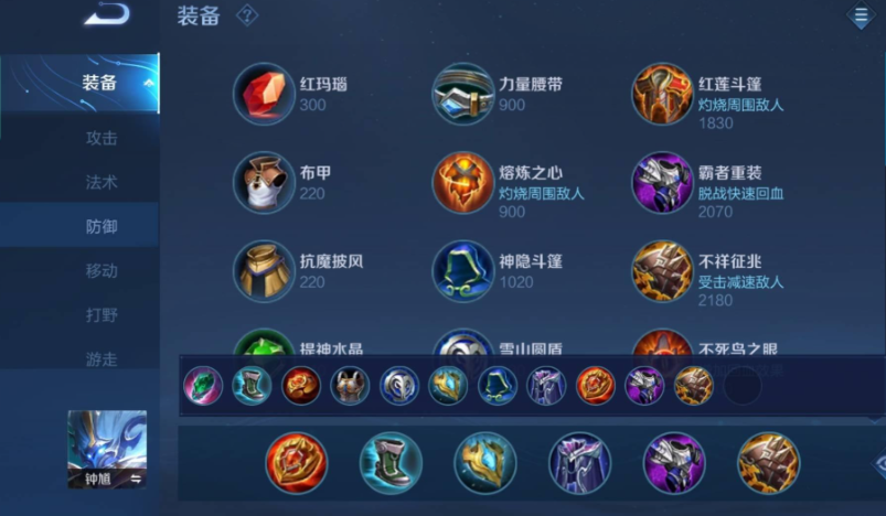 钟馗的出装思路会更偏向功能性和肉度。作为辅助,开局肯定要先出学识宝石。之后优先做出疾步之靴,大幅增加游走支援的速度,让你能更好地配合墨子进行gank。第一件大辅助装推荐近卫荣耀,为身边的队友增加双抗,提升团队的生存能力。由于钟馗需要靠近敌人释放大招,且钩人后可能成为集火目标,所以防御装备是关键。极寒风暴是非常适合他的选择,提供高额护甲、冷却缩减和法力值,被动还能对攻击者造成减速。魔女斗篷则是应对敌方法师的核心魔抗装。最后一件装备可以视情况选择,比如霸者重装来提升脱战回复能力,保证持续作战;或者补一件痛苦面具来补充伤害,利用技能特性折磨对手。