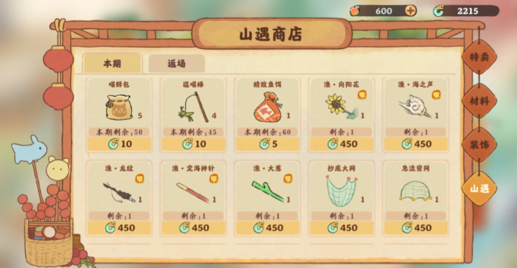 杂货铺内部划分为三个主要板块,分别是特卖区、材料区和装饰区,每个区域都针对不同的游戏需求。特卖区每日提供随机的作物和工坊产品,帮助玩家弥补生产缺口;材料区则出售建材、鱼饵等实用物品,支持建筑升级和钓鱼活动;装饰区有各类乙级和丙级建筑,能有效提升家园的舒适度。这些商品使用铜钱、玎当和月琅三种货币进行交易,每种货币都有独特的获取方式和用途,让玩家可以根据自己的资源情况灵活选择购买策略。