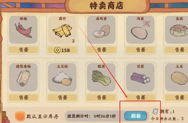 杂货铺的商品不是固定不变的,特卖区会在每日中午12点自动刷新,带来新的物品选择,这是玩家获取稀缺资源的好机会。如果你需要更多商品,还可以通过付费的方式每天额外刷新三次,但要注意合理控制次数,避免不必要的花费。刷新后,商品格子会显示新的随机作物或工坊产品,帮助玩家在资源紧张时及时补货,确保生产链和订单任务顺利进行。