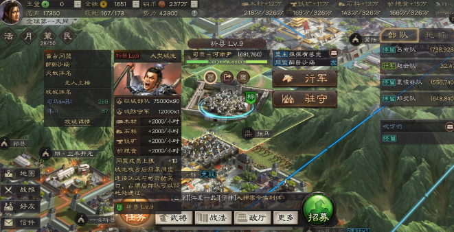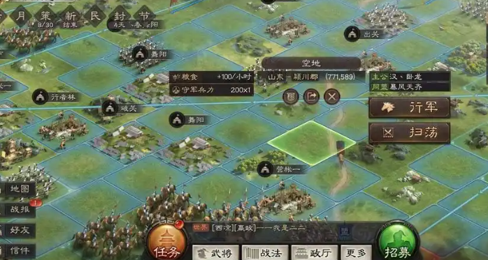 营帐的视野覆盖范围是周围2格,能够提前发现敌军动向或侦查资源地分布,为战术部署提供信息支持。在外攻城时,营帐可作为临时大本营,方便集结主力部队和器械兵。需营帐内征兵需额外消耗铜币,且无法享受主城征兵加速效果,但多线征兵仍能显著提升兵力补充效率。营帐等级影响可调动部队数量和耐久度,建议根据作战需求优先升级至2-3级。