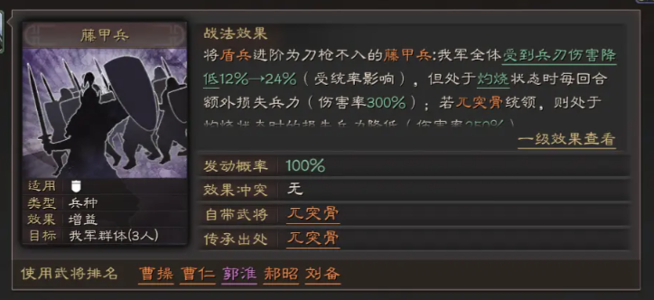 针对曹操的高防御和恢复能力,建议优先选择能克制盾兵或骑兵的阵容。比如使用高爆发的谋略输出武将,或者搭配具有禁疗效果的战法,限制他的兵力恢复。曹操通常出现在魏盾或魏骑队伍中,如果遇到他带藤甲兵的情况,火攻类战法会非常有效。控制类战法也能打乱他的节奏,比如计穷或混乱,让他无法顺利释放增益效果。