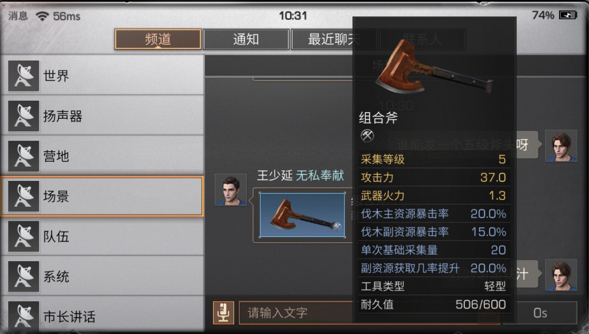 铁斧作为中级工具,需要采集等级达到8级才能解锁配方。制作材料包括240个木头、60个石头和2个铁矿,其中铁矿需要通过石镐开采矿石获得。铁斧不仅能采集更高级的木材资源如树心,还具备6%的主资源暴击率和5%的副资源暴击率,大幅提升采集效率。制作铁斧时建议优先使用品质较好的材料,这会影响工具的耐久度和采集效果。