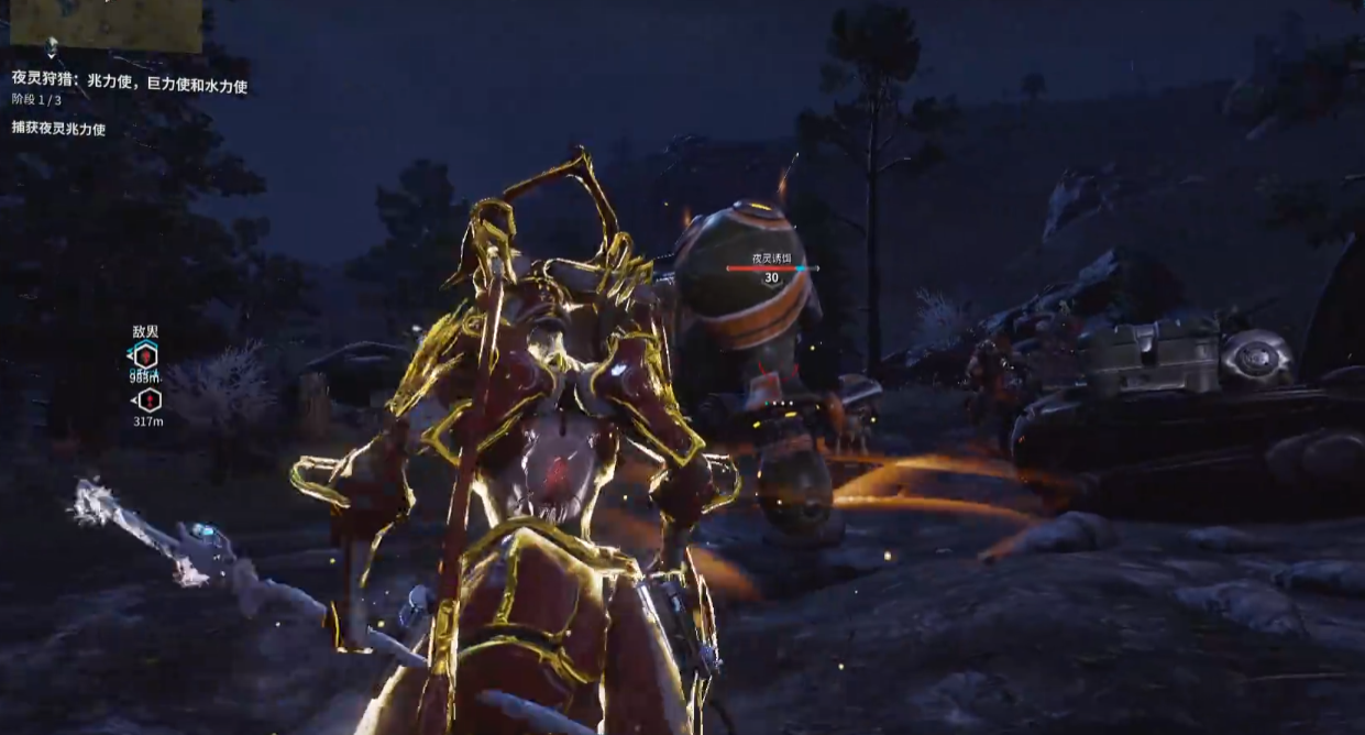 平原boss主要出现在夜灵平原的夜晚时段,会随机出现在水域附近,刚开始看到它是无敌状态,必须先用指挥官模式打掉它的护盾才能进行后续操作。护盾打掉后,boss会露出关节部位,这时候需要用高伤害武器快速破坏这些关节。每次破坏一个关节,boss都会短暂倒地并重新生成护盾,所以得反复切换指挥官和战甲模式来持续输出。