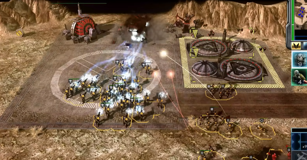面对外星入侵,GDI和Nod一开始被打得措手不及。凯恩重新现身,命令咱们撕毁与GDI的临时协议,用偷来的核弹攻击他们,并处死了基莲。在欧洲战场,GDI指挥官发现了思金人的弱点,开始用声波武器反击。思金人意识到被凯恩欺骗,决定撤退,并建造阈限之塔准备跑路。咱们的任务变成阻止他们,同时偷取GDI和思金人的科技。