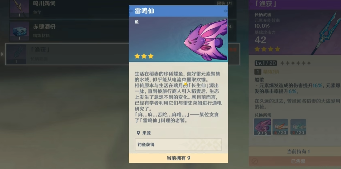抛竿的时候注意力度,别甩太远,尽量让鱼钩落在鱼群附近。雷鸣仙上钩时,进度条会动得比较快,咱们得集中精力,让浮标保持在绿色区域里。如果失败了也别急,多试几次,熟悉手感后就会轻松很多。钓完记得检查背包,看看有没有漏掉的鱼,毕竟它三天才刷新一次,错过就得再等。最后雷鸣仙是兑换渔获武器的关键材料,所以尽量多钓几条备用。如果钓点没鱼了,可能是被其他玩家钓光了,换个世界或者隔天再来。