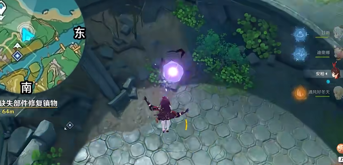 任务进行过程中会涉及多个关键道具的收集,主要包括磐柱镶珠和磐柱镇石。这些物品通常被保护罩或结界包围,需要通过机关解谜才能获取。使用元素视野可以清晰看到道具的方位指引,部分道具需要击败守护敌人后才能拾取。不同区域的同名道具实际上属于独立物品,例如无想刃狭间的磐柱镶珠与蛇骨矿洞的磐柱镶珠虽然图标相同但任务进度中会被系统区分记录。