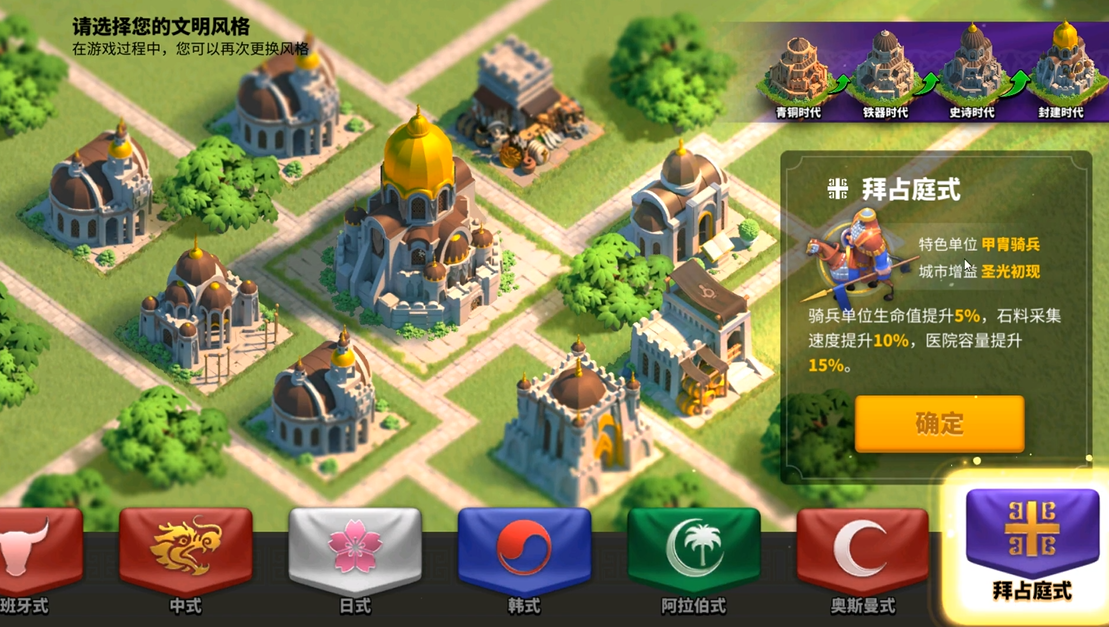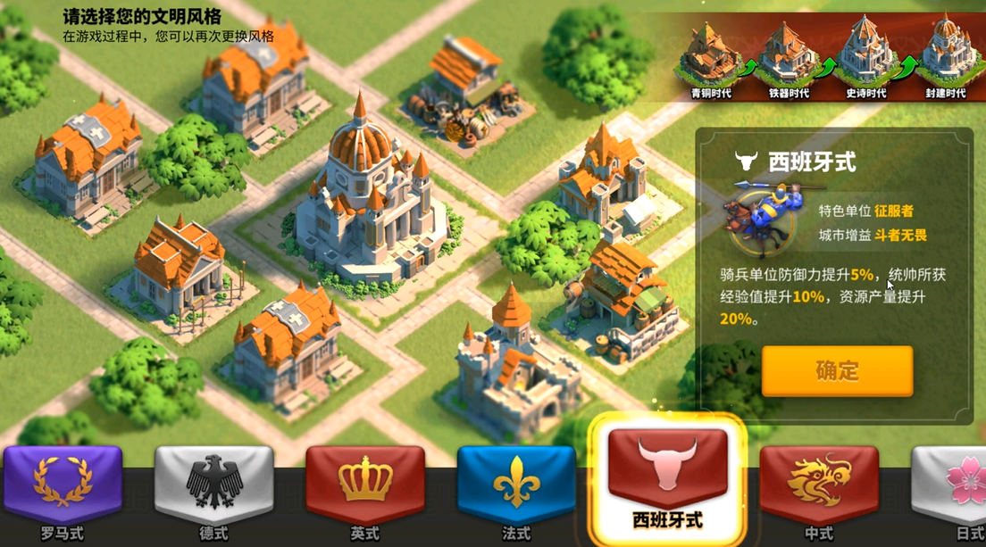 进入游戏后第一件事就是选择建筑风格,这可是影响咱们后期发展的关键一步。目前有11种风格可选,每种风格都有独特的加成效果,比如罗马风格能提升步兵防御和行军速度,法兰西风格则加强生命值和治疗效率。建议根据自己偏好的兵种类型来选,步兵玩家优先考虑罗马或法兰西,骑兵玩家更适合德意志或阿拉伯,弓兵玩家则可以看看韩国或奥斯曼的加成。别担心选错,后期还能改,但前期选对风格能让发育更顺利哦。