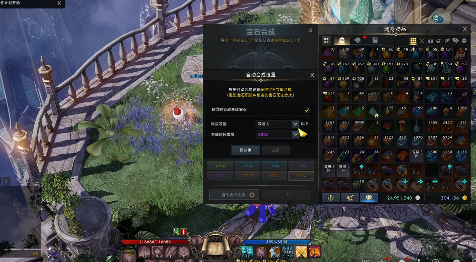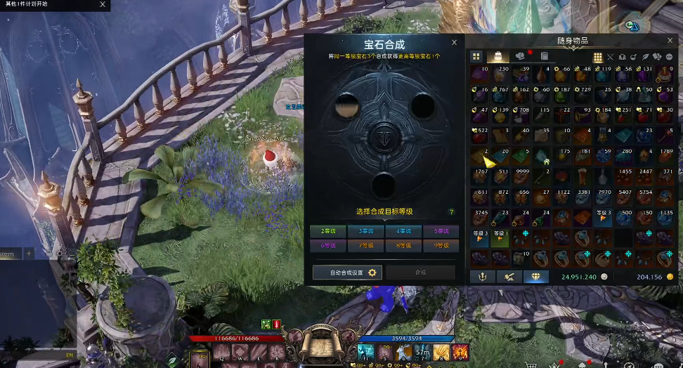 如果想合成宝石提升战力,直接在角色信息界面找到宝石栏就能操作啦。打开背包后留意下方那个闪闪发亮的钻石图标,点进去就是宝石合成页面,完全不需要找特定NPC或跑地图。这里的设计很贴心,合成过程不消耗金币或材料,只需要准备好同类宝石就能开搞。