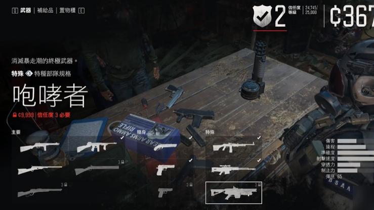 除了挑战模式外,巫师岛营地也提供加特林的购买选项。游戏后期在巫师岛军械商人处可以花费营地信任度货币换取这把武器。需巫师岛出售的加特林分为有限弹药和无限弹药两种版本,后者需要更高营地信任等级才能解锁。建议优先提升巫师岛营地的好感度,以便尽早获得这把强力武器。