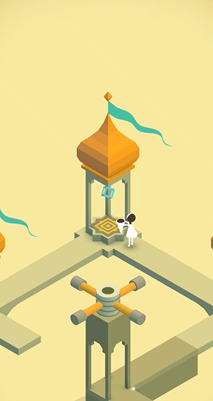 在中央旋钮平台升起后,关卡进入最后阶段。玩家的视野和可操作空间发生了变化,需要继续旋转已升高的旋钮机构。这次旋转的目标是将角色所在平台的道路与关卡顶部的终点出口连接起来。由于平台升高,道路的拼接关系会呈现出与之前不同的视觉错觉效果,玩家可能需要多尝试几次旋转,以找到那个能将两端道路完美衔接的角度。当道路最终连接成一条通畅的路径时,玩家便可操控角色径直走向终点,完成本关的挑战。整个过程环环相扣,每一步操作都为下一步奠定了基础。