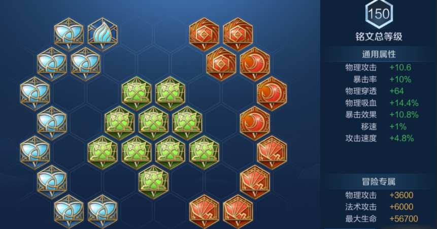 铭文搭配选择7狩猎、3夺萃、10鹰眼、10祸源,狩猎提升移速与攻速优化走A手感,夺萃补充吸血增强续航,鹰眼提供物理穿透保证前期伤害,祸源拉高暴击率让出装效果更快成型,与这套出装形成完美契合,进一步强化鲁班整体作战能力。