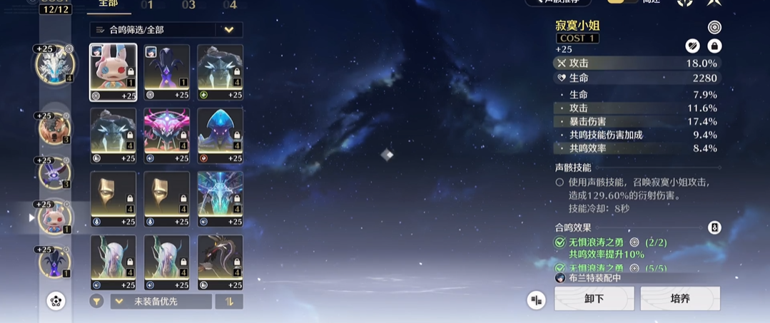 队伍配置上,优先选择丹瑾作为核心输出,其衍射属性可稳定针对丹佛斯的弱点,配合共鸣技能与重击循环能高效削减共振条,同时自身具备一定吸血能力提升续航。辅助位选择守岸人,延奏技能可提供全伤害加深,还能让队伍在受击时快速脱离控制,大幅提升容错率,协奏充能效率也能加快全队大招循环。治疗位优选白芷,稳定的群体治疗与护盾可抵消丹佛斯的持续冰伤与爆发攻击,避免血量骤降导致翻车。声骸方面,主C丹瑾佩戴四件凶猛套装,堆叠攻击力与暴击伤害,辅助与治疗则选择对应属性的辅助套装,重点堆充能效率与效果命中,保证技能循环流畅。