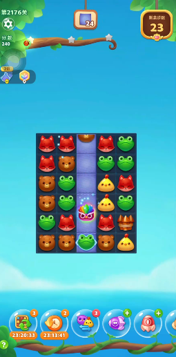 通关过程中还要注意金豆荚的传送顺序,优先让右下角出口的金豆荚先传送,此处位置固定,无需依赖移动地板,传送效率更高,再依次处理左右移动地板上的金豆荚,移动地板会周期性变换位置,要等其与传送门对齐时再清理下方障碍,确保金豆荚能精准落入出口。若遇到元素分布不佳、难以形成特效的情况,可适当调整消除顺序,优先保留数量较少的同色动物,为后续合成特效做准备,避免因颜色分布混乱导致卡关。只要牢牢把握中下方优先消除、特效组合清障、精准控制传送节奏这几个核心要点,就能在有限步数内完成23个金豆荚的收集,顺利通过开心消消乐1290关。
