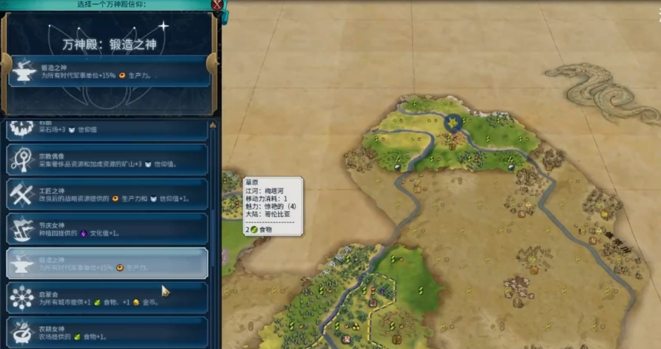 如果出生点附近有大量矿山或采石场,手工业之神是不错的选择,它能让你更快积累生产力优势。若地图上沼泽或泛滥平原较多,芦苇和沼泽地的夫人能提供早期紧缺的产能。对于海图开局,海洋之神能通过渔船带来额外生产力,但需要后期港口建设才能完全发挥效果。记得观察地图特点,别盲目跟风选择热门但不符合地形的万神殿。