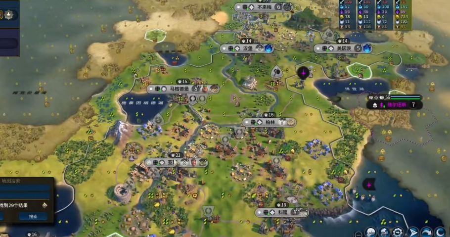 抢万神殿的关键在于快速积累25点信仰。早期挂上君主崇拜政策卡,或优先探索部落村庄碰运气获取遗物。如果遇到宗教城邦,派遣使者获取信仰加成也很重要。德国本身没有信仰优势,所以需要更主动地争取资源,比如锁定染料、烟草等信仰奢侈资源。若发现自然奇观如罗赖马山,直接坐城能大幅加速万神殿解锁。
